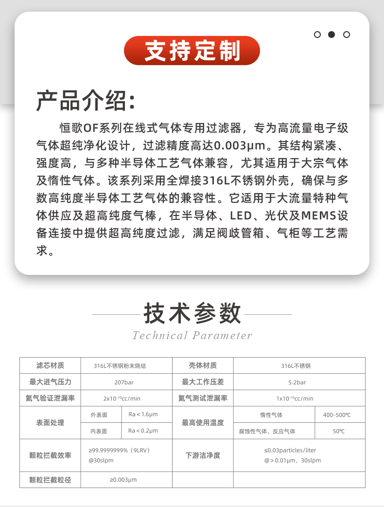 半导体供气系统316L超纯气体0.003μm过滤器氮气氢气氧气过滤器