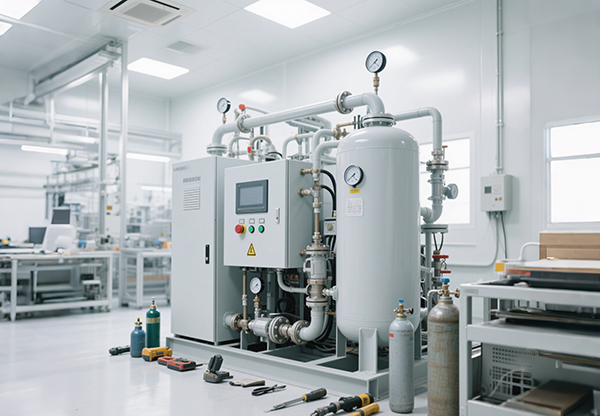 某国际知名半导体制造商,其芯片生产线需持续供应纯度≥99.9995%、含尘量≤0.01μm的超高纯氮气,用于晶圆封装和回流焊工艺。原有制氮机因后端过滤系统精度不足,导致氮气颗粒污染问题频发,良品率下降5%-8%。